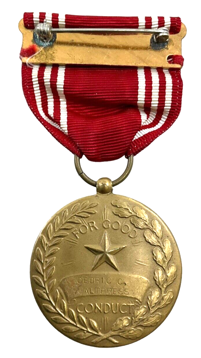 WW2 US Good Conduct Medal & Ribbon Named Cedric C. Maltpress