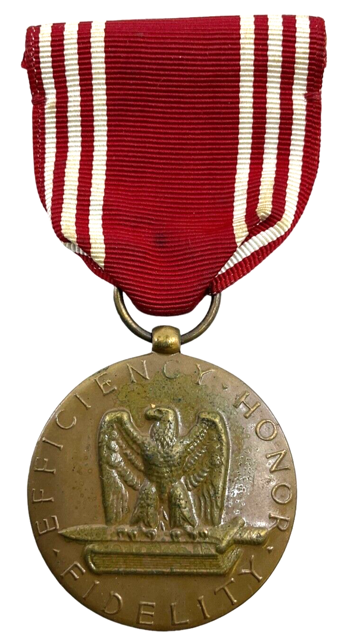 The WW2 US Good Conduct Medal & Ribbon named to Leo Weinstein is a significant piece of military history, awarded to those who demonstrated exemplary behavior, efficiency, and fidelity during their service. This particular medal, linked to a serviceman named Leo Weinstein, embodies the valor and disciplined conduct expected of American soldiers during World War II. The medal typically features a bronze disc with an eagle perched on a book and saber, representing readiness and knowledge. Accompanying the medal is the distinctive red and white striped ribbon, often worn to signify this honorable achievement. Collectors and historians alike treasure items like this for their ability to tell personal stories of bravery and dedication amidst one of the most tumultuous times in modern history. This medal not only serves as a reminder of Leo Weinstein’s honorable service but also as a tribute to the countless servicemen and women who upheld the highest standards during the war.