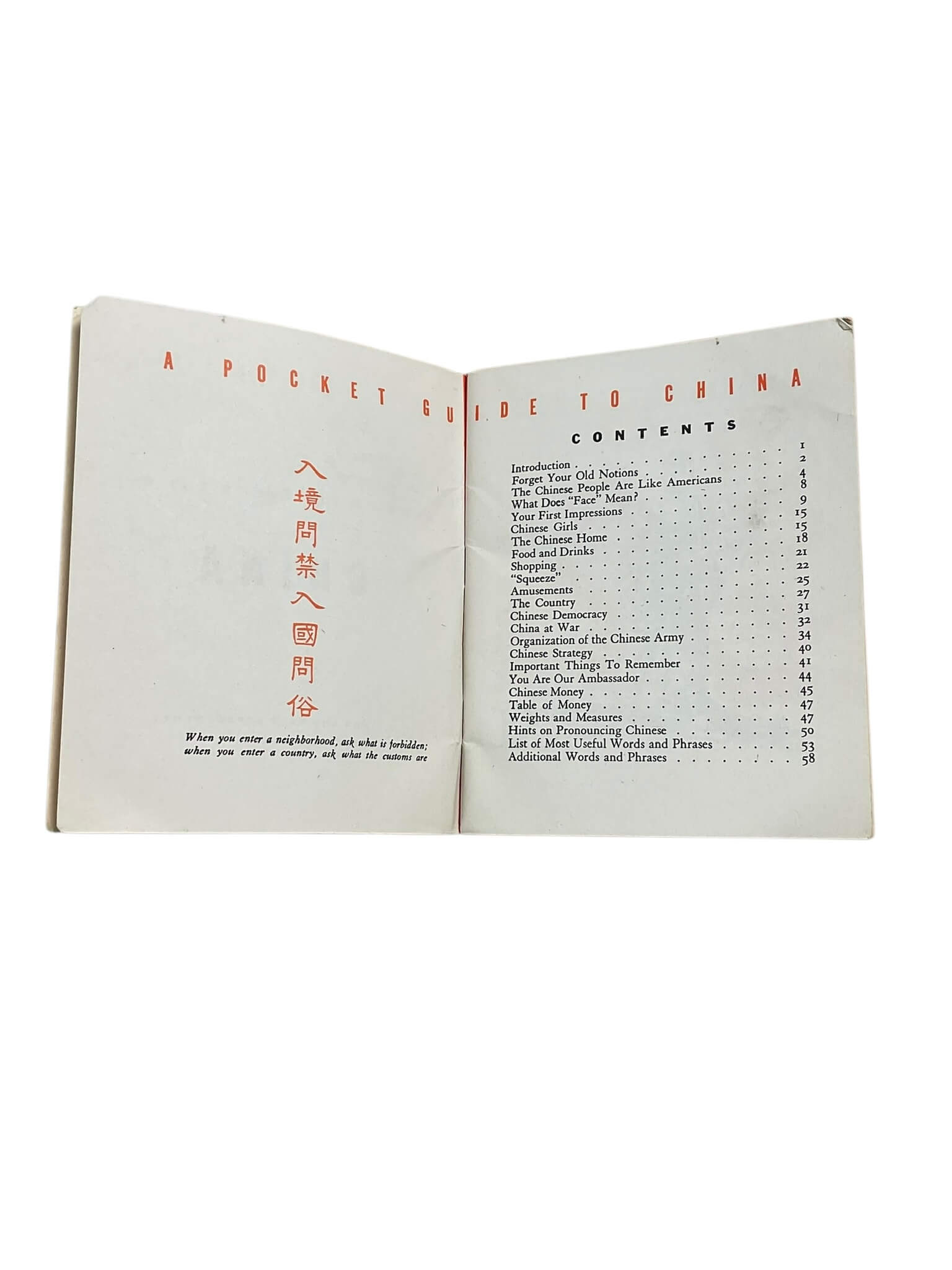 The item in reference is a WW2 US Handbook of China CBI, a softcover reference book originally published in 1942. This manual was created for American soldiers deployed in the China Burma India (CBI) theater of World War II. Comprising of detailed information about the Chinese culture, geography, people, and language, it was designed to provide necessary cultural awareness and navigational guidance to help soldiers better adapt to their environment. Standing as an invaluable source of historical and cultural information, the book depicts an authentic view of China during WW2 through an American lens. Although it is a softcover edition, the book is noted for its sturdy and durable design suited for use in extreme conditions. Being neither a fake nor a reproduction, this original print offers a unique insight into the wartime period. Its rich content and historical significance make it a valuable asset for collectors and history enthusiasts alike.