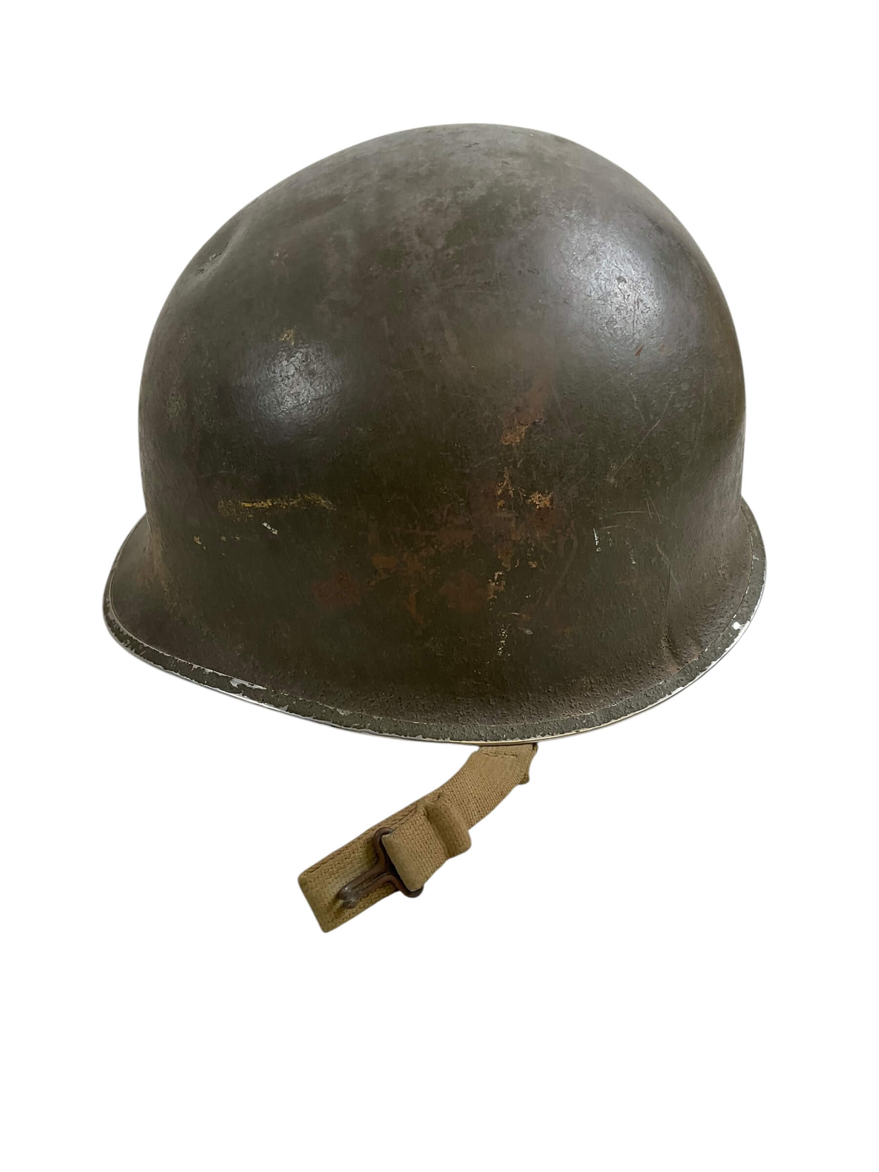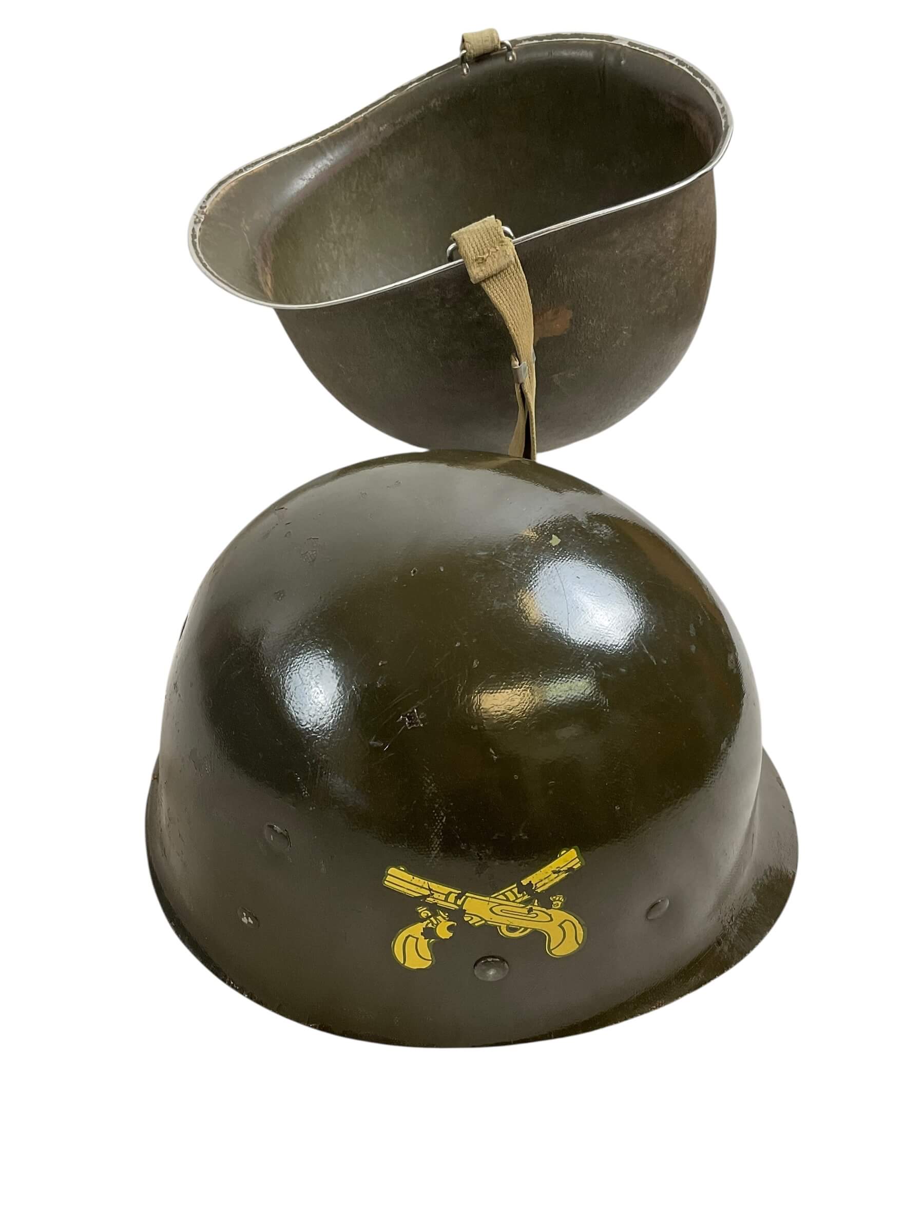 This WW2 US M1 Helmet is a treasured piece of military history, originally designed for the brave soldiers of the American 21st Corps Military Police. The helmet is a Fixed Bale variant, noted for its bale (chinstrap loop) welded directly to the helmet shell, indicative of early war production. The liner is a distinctive product of Westinghouse Electric Company, one of the key manufacturers of M1 helmet liners during the war. Made of high-pressure plastic, it was designed to absorb the shock of any impact, offering vital protection to the wearer. The helmet carries the traditional Military Police markings, adding to its historical authenticity. This artifact not only represents the courage of the troops who served during World War II, but also the industrial prowess that played a crucial role in the outcome of the war. It’s an invaluable addition to any military memorabilia collection.