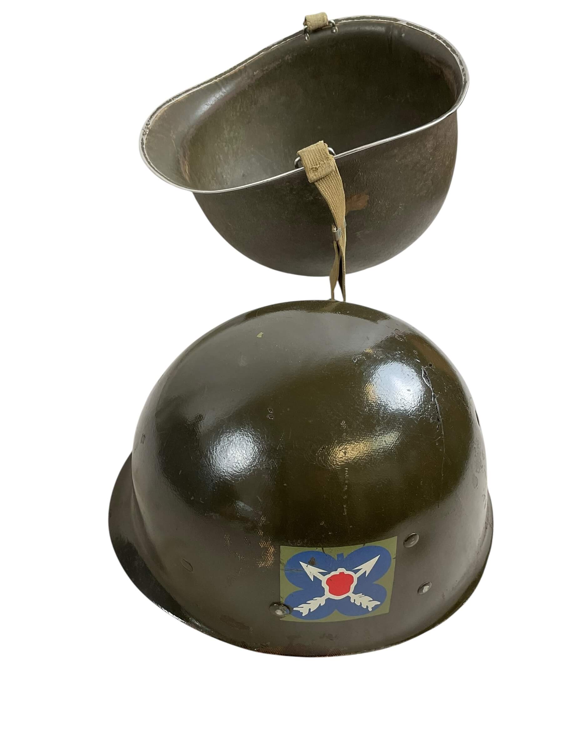 WW2 US M1 Helmet Fixed Bale Military Police 21st Corps Westinghouse Liner
