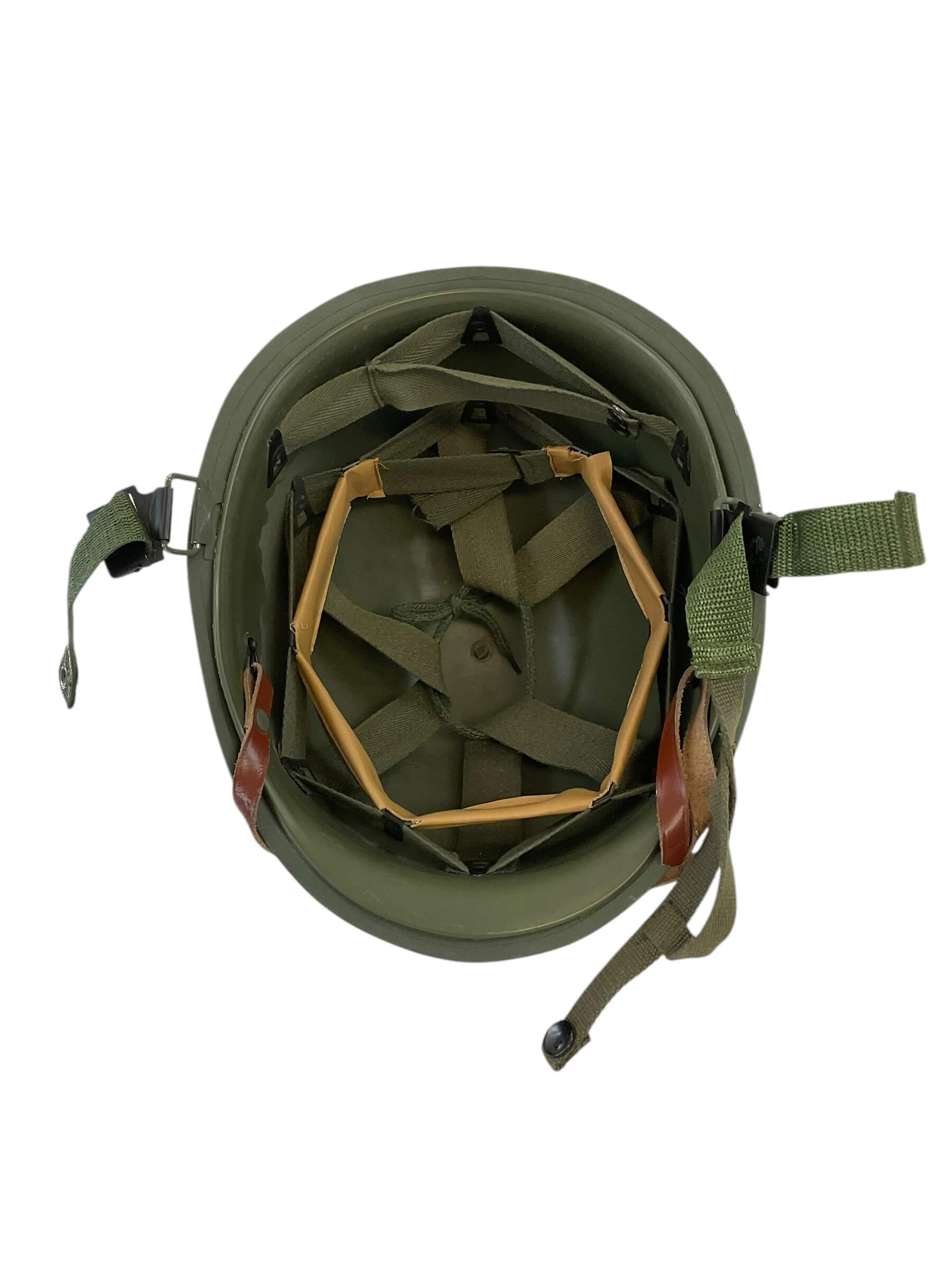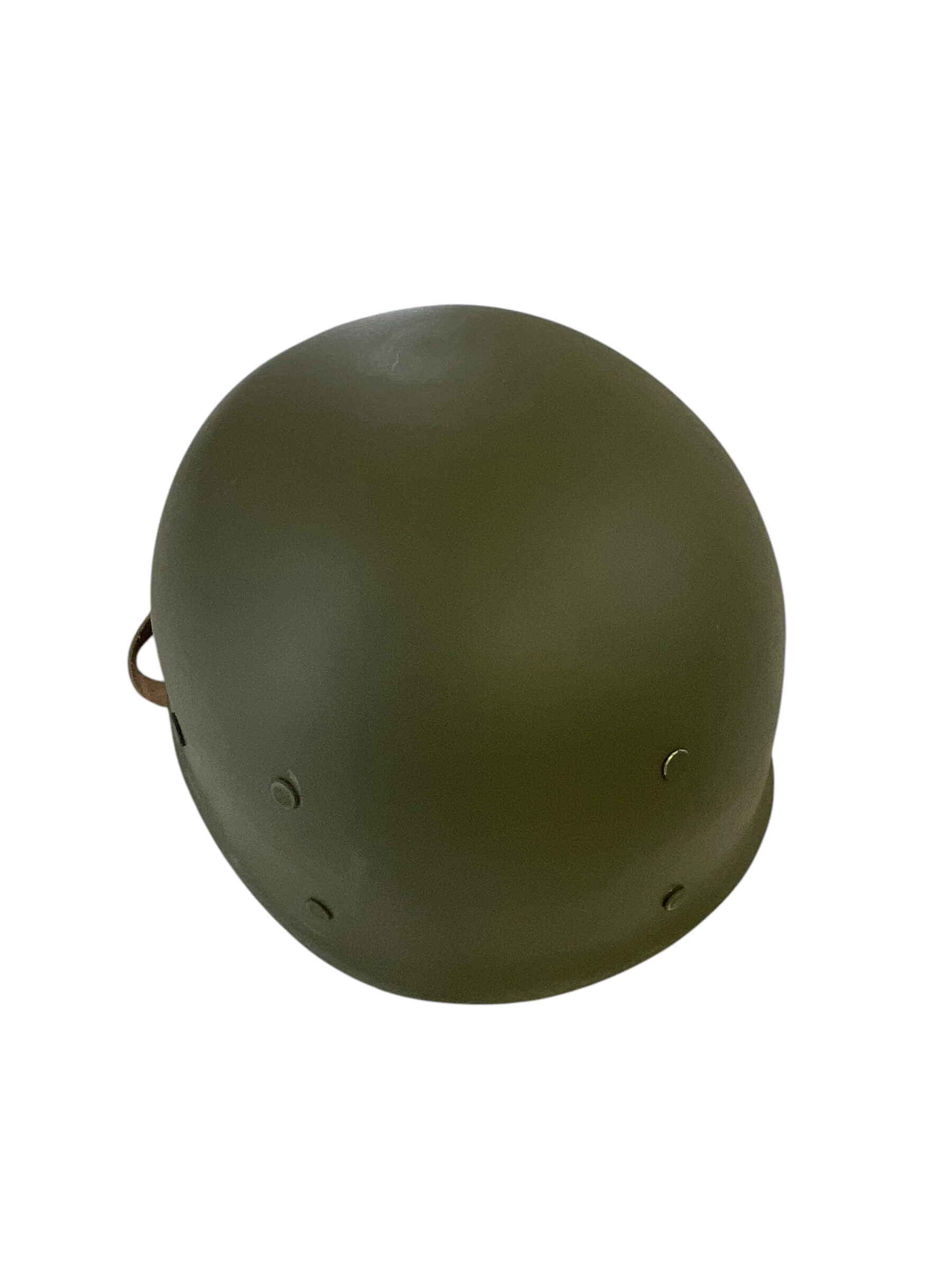 This product is a replica of the WWII US M1 Steel Helmet, meticulously reproduced by Chinese manufacturers. The M1 helmet was a staple of the US military during the Second World War and this Chinese copy meticulously recreates its iconic design. Made of high-quality steel, it mirrors the robust strength and durability of the original piece. The helmet showcases the classic olive drab color and adjustable leather interior, offering a realistic representation of the wartime headgear. Ideal for collectors, history enthusiasts, or reenactment participants, this helmet provides a tangible connection to an important period in world history. Please note, this is a replica item and not an original piece. It’s a perfect addition to any military memorabilia collection or as a unique gift for history buffs.