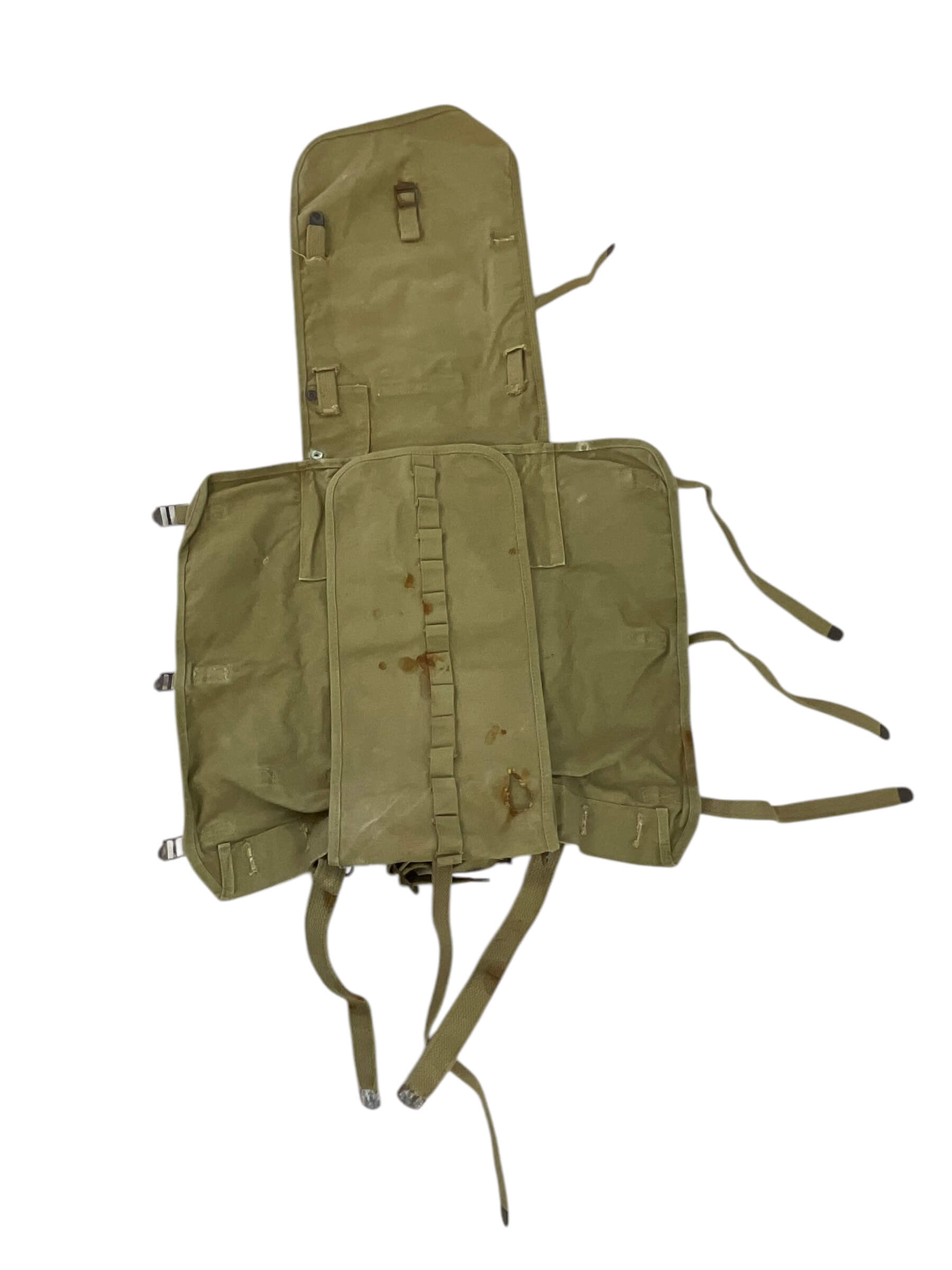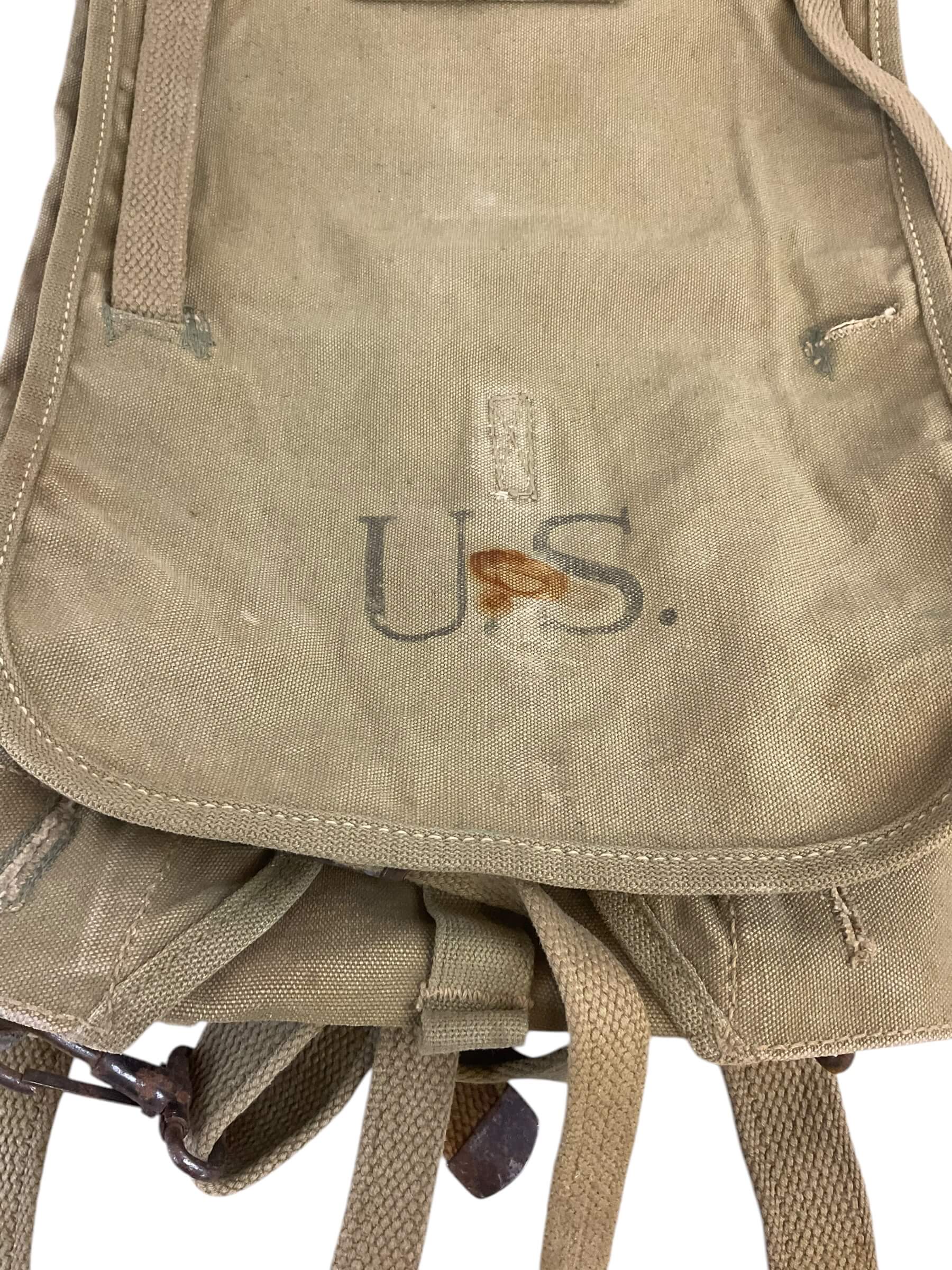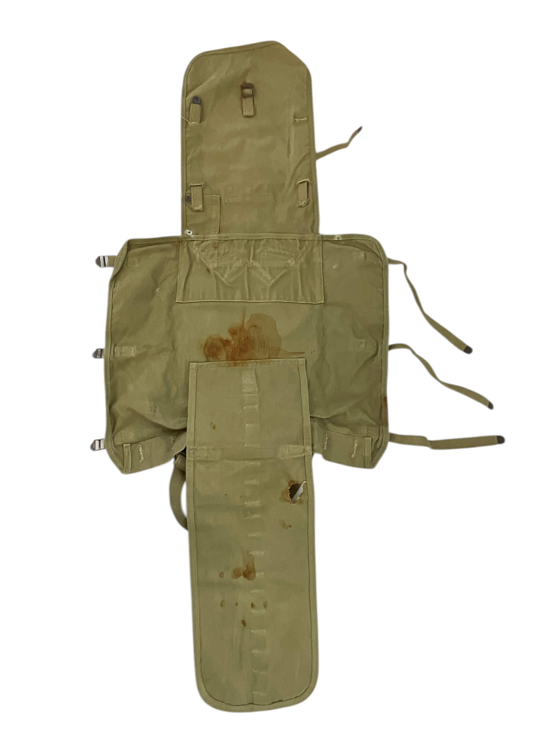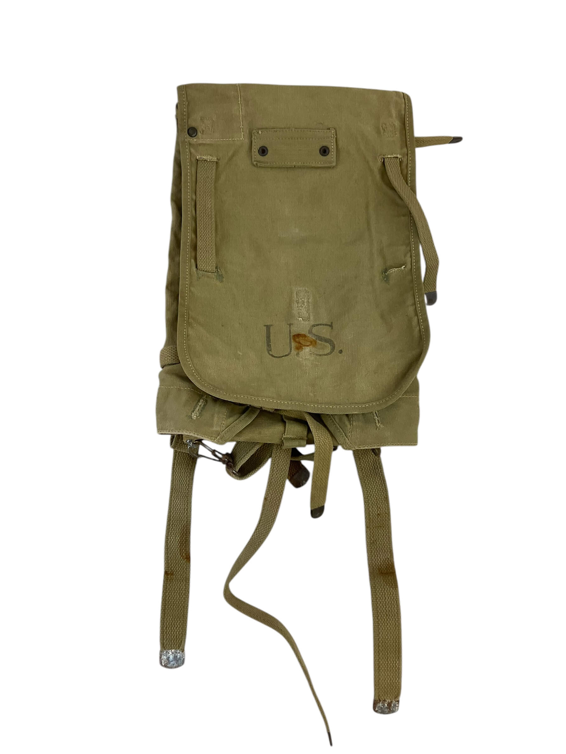 The WW2 US M1928 Haversack Dated 1942 is a vintage military gear that served as the standard backpack for American soldiers during the second World War. It was designed to carry the soldier’s personal belongings, rations, and essential equipment. Made from robust canvas material, it features multiple compartments and adjustable shoulder straps, catering to the soldiers’ needs on the field. This particular model, dated 1942, is a significant piece of history, reflecting the rigors of wartime conditions and the practicality required of military equipment. Despite its age, the haversack retains its sturdy structure and is often sought after by military memorabilia collectors. Its timeless design and historical significance make it a valuable item for historical exhibitions, reenactments, or personal collections.