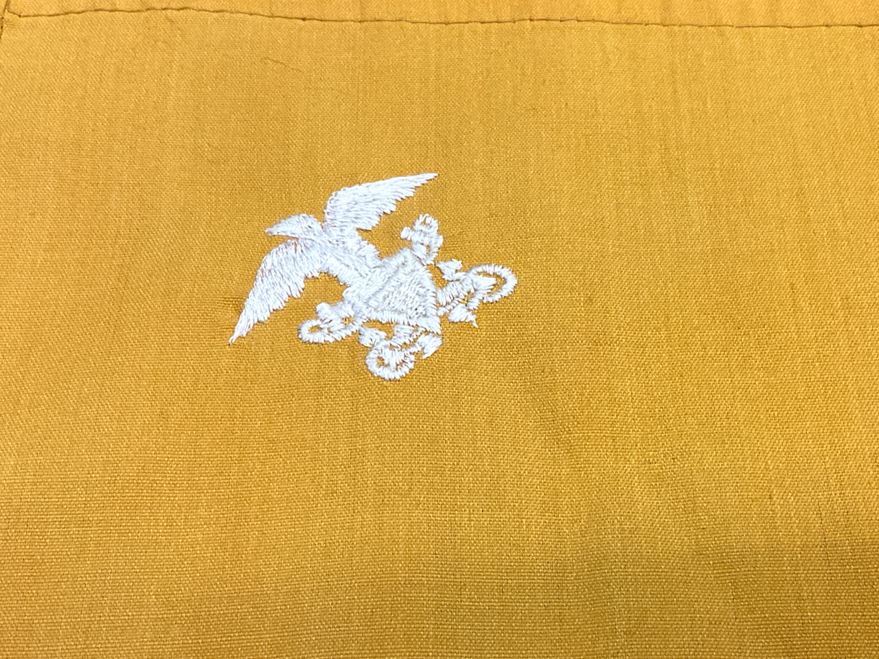 Dive into history with this unique piece of World War II memorabilia. This 17 x 17-inch embroidered napkin features the distinct insignia of the US Navy rank, offering a tangible connection to the brave servicemen of the era. Impeccably crafted, the embroidery showcases intricate details that highlight the craftsmanship and pride of the naval tradition. Ideal for collectors, history enthusiasts, or those looking to add a touch of vintage elegance to their decor, this napkin is more than just a piece of fabric; it’s a conversation starter and a snapshot of American heritage. Whether displayed in a frame, used in a themed event, or cherished as part of your personal collection, this WW2 US Navy Insignia Rank Embroidered Napkin is a meaningful and stylish artifact from a pivotal moment in history.