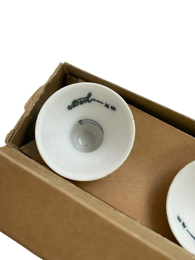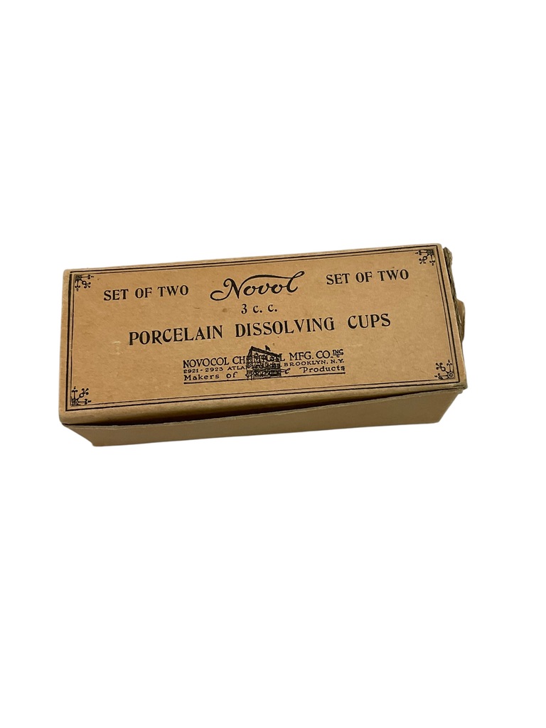 WW2 US Novol Set of Two 3cc Porcelain Dissolving Cups In Original Advertising Box Brooklyn NY