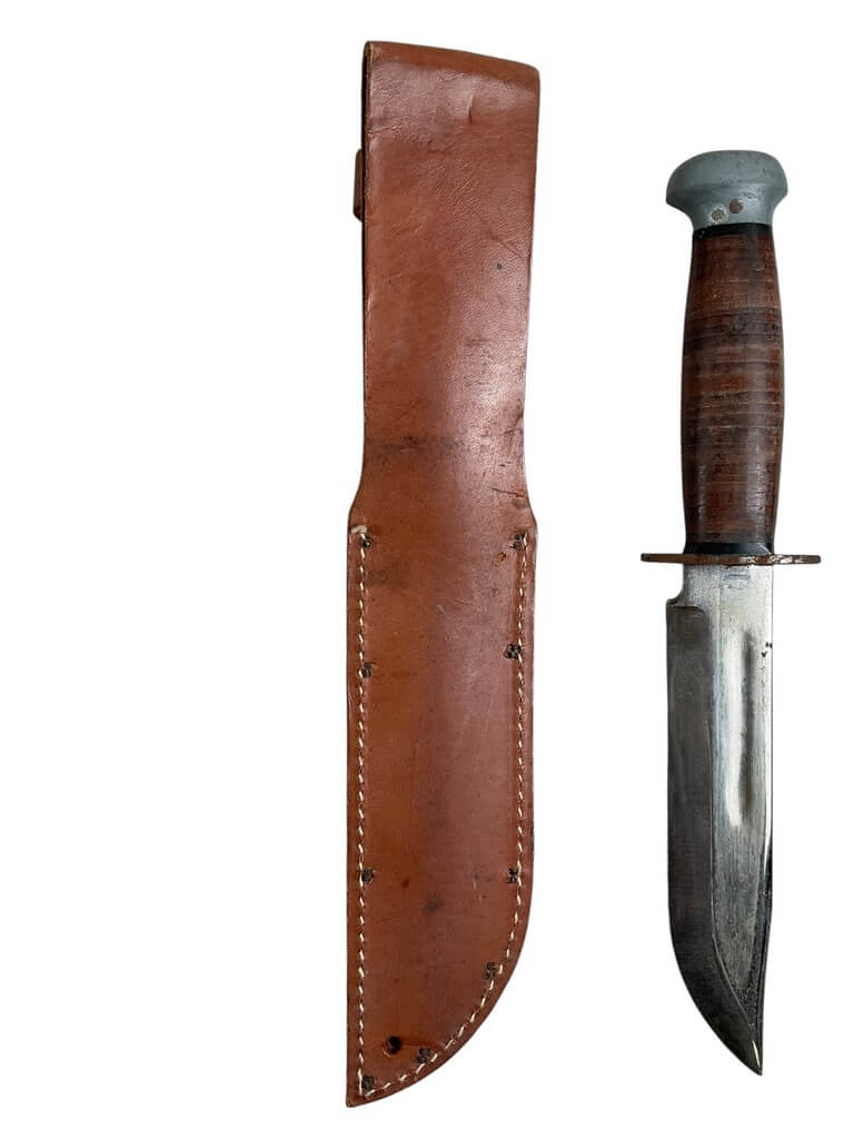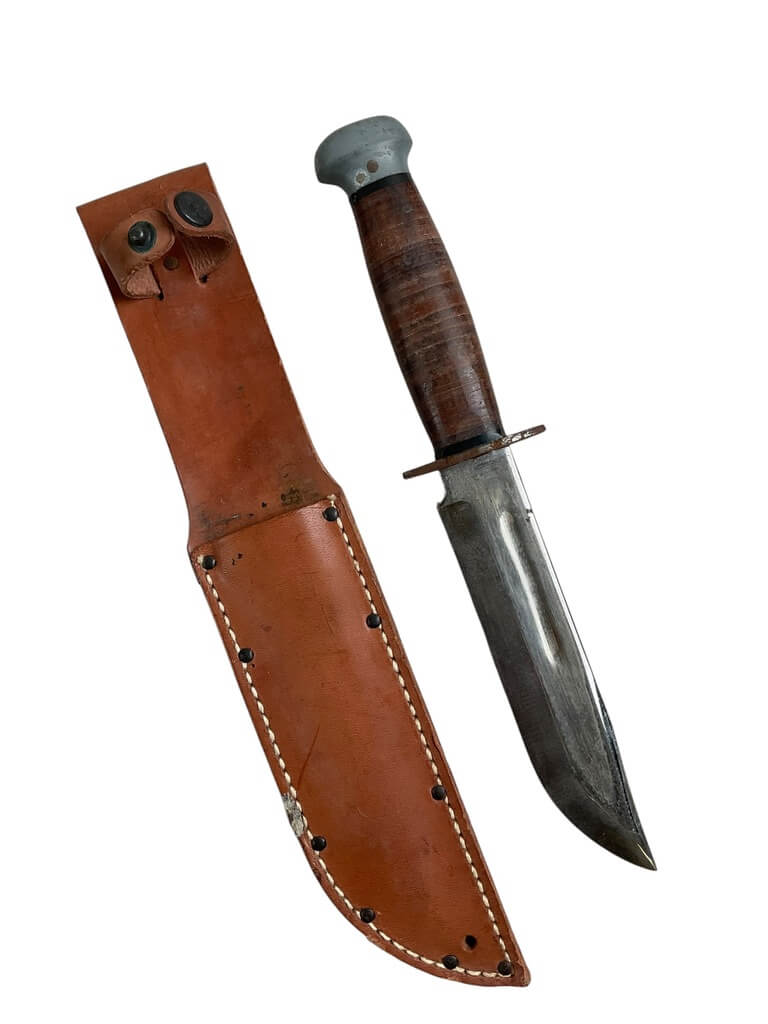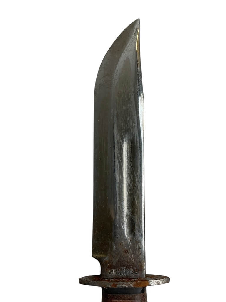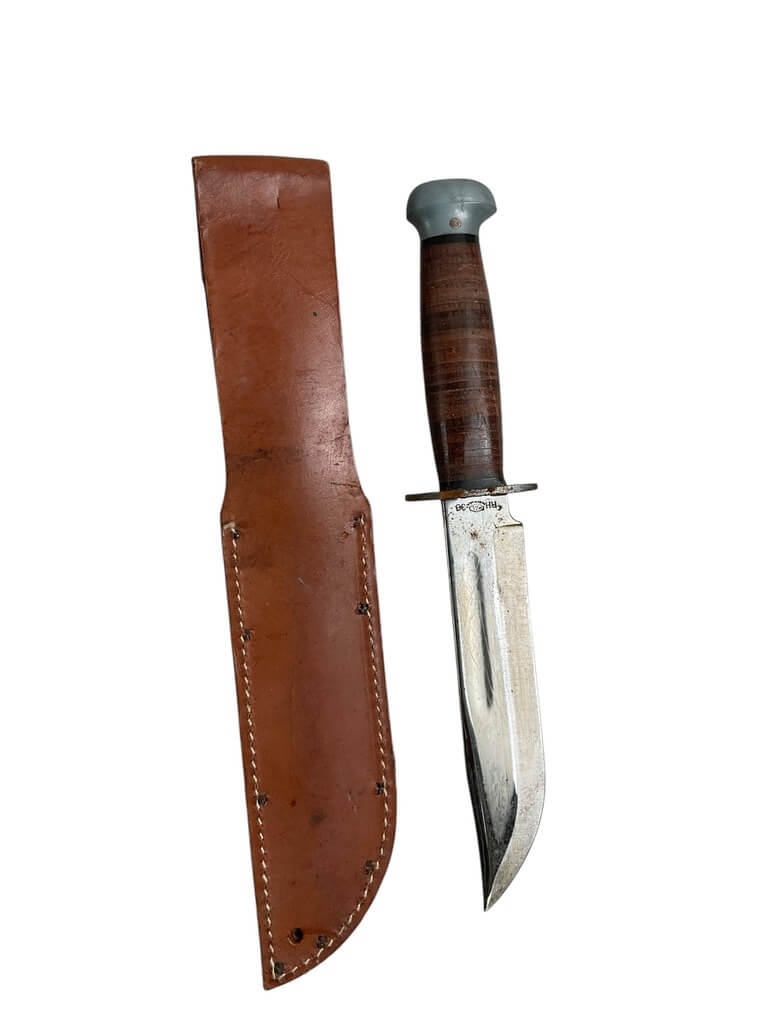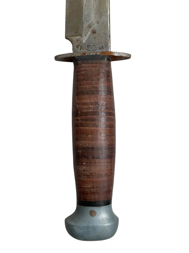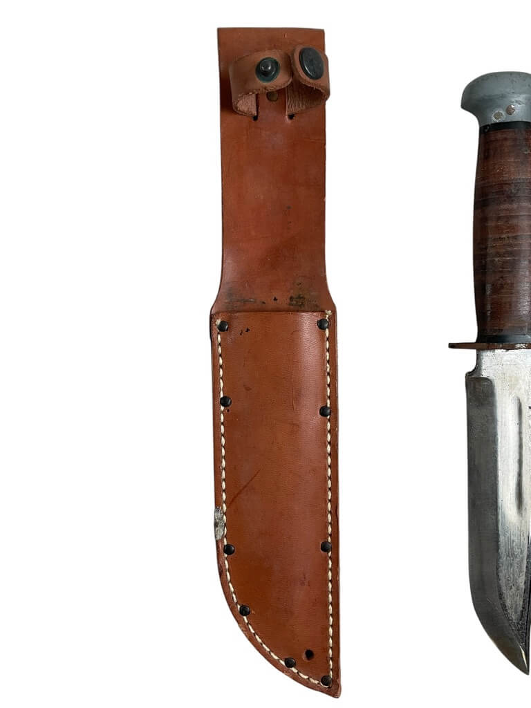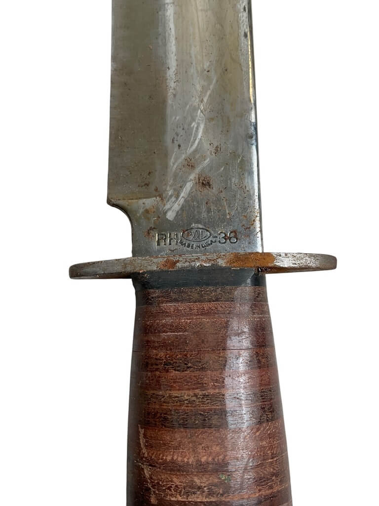 The WW2 US PAL Knife RH36 with Scabbard is a remarkable piece of World War II-era military history. Manufactured by PAL Cutlery Company, this combat weapon is highly sought after by collectors and enthusiasts. The RH36 model features a 6-inch sharp steel blade and a 5-inch leather handle, providing a solid grip. Its scabbard is made of sturdy leather, designed for functionality and durability during the war. The markings “U.S. RH36” and “PAL” are clearly visible on the blade, which authenticate its origin. This knife was used by U.S. soldiers for survival, combat, and utility purposes in various theaters of war. This genuine WW2 US PAL Knife RH36 with Scabbard is not just a weapon, but a piece of American history, symbolizing the bravery and resilience of the soldiers who fought in the Second World War.