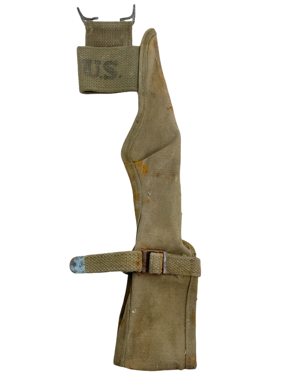 The “WW2 US Pick Axe Canvas Cover 1944 Dated” is a remarkable piece of military history from the Second World War era. Meticulously crafted from durable canvas material, this cover was designed to protect and carry the essential pick axe used by U.S. troops. Dated 1944, it reflects the quality and attention to detail characteristic of wartime production. The cover features reinforced stitching and sturdy fastenings, ensuring the pick axe remained secure during transport and use in various terrains. A stamped date and possible military markings add authenticity and historical value, appealing to both collectors and history enthusiasts. This canvas cover is not only a functional accessory but also serves as a poignant reminder of the everyday tools and gear that played a crucial role in the lives of soldiers during World War II. Owning this piece connects you to a significant period in history, encapsulating the endurance and resilience of those who served.