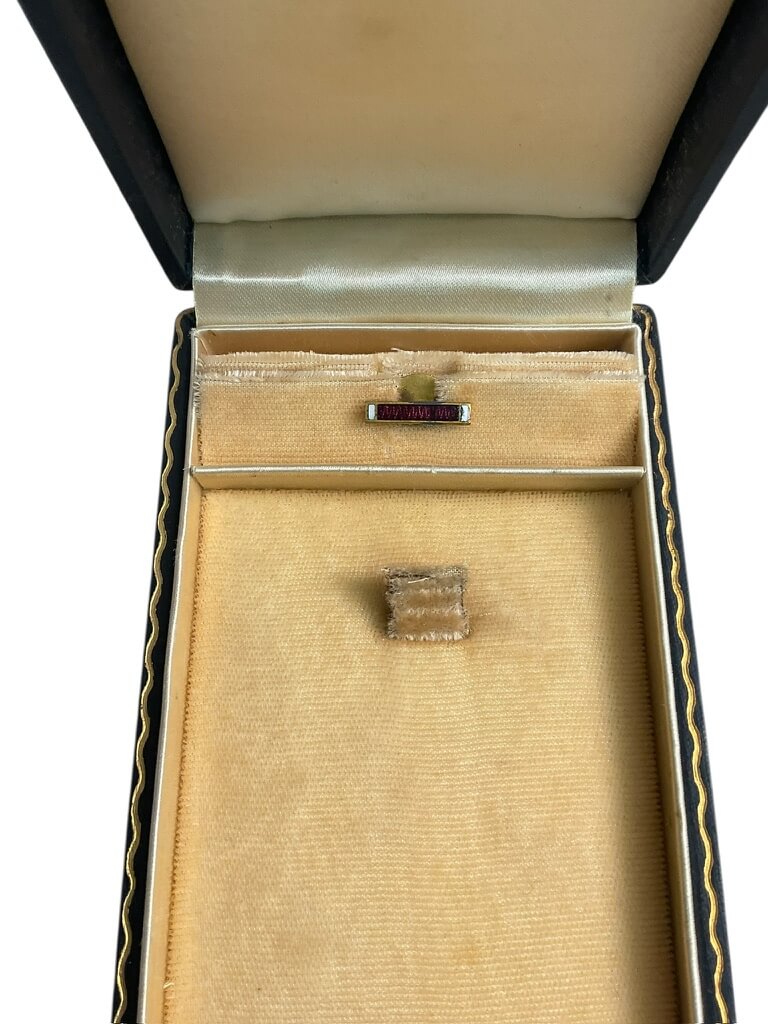 This product is an empty box designated for the WW2 US Purple Heart Medal. The box is designed to store and protect the distinguished decoration. It is an authentic piece representative of WW2-era military memorabilia. Note that it does not include the medal itself — the listing is for the box only.