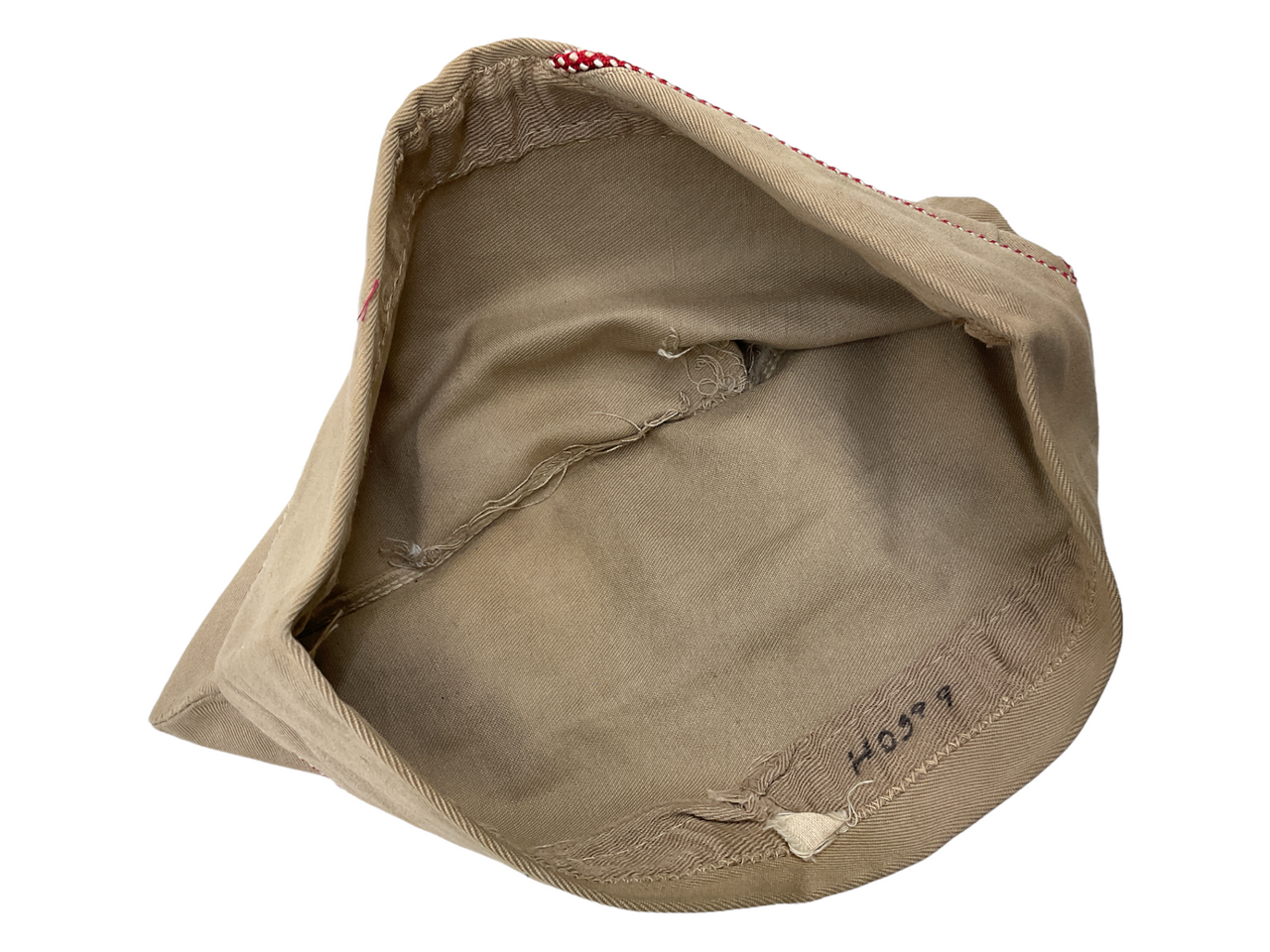 Introducing a rare and authentic piece of WWII military history: the WW2 US Red & White Piped Garrison Wedge Cap, meticulously sized at 6 3/8. This iconic headgear is distinguished by its striking red and white piping that lines the edges, signifying its affiliation with specific military units or services during the Second World War. Crafted from durable materials typical of the era, the cap is not only a testament to the rugged functionality embraced by servicemen but also a poignant memento of their sacrifice and commitment. The garrison wedge cap was a standard issue, characterized by its unique folding design that made it easy to store and carry. Collectors and history enthusiasts alike will appreciate the authenticity and preserved condition of this exceptional artifact. Whether as a display piece or a part of a reenactment ensemble, this cap offers a tangible connection to the bravery and camaraderie of the Greatest Generation.