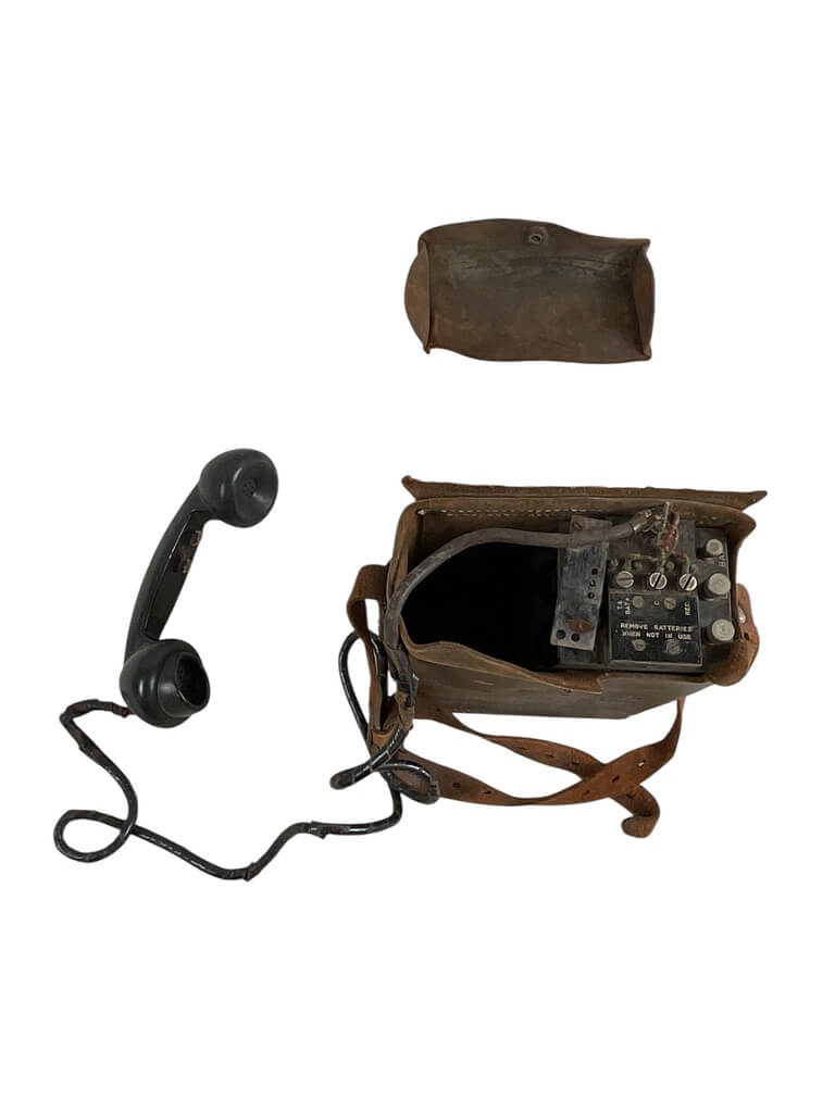 The WW2 US Signal Corps Field Phone is a remarkable piece of military communication technology from the World War II era. Manufactured by the US Signal Corps, it played a crucial role in facilitating communication between troops and headquarters on the battlefield. Built to withstand harsh environmental conditions, it features a rugged, durable design intended for portability and easy operation. The phone operates on a hand-cranked generator system, requiring no external power source. It utilizes a two-wire line to establish a connection, enabling clear and secure communication. Complete with a shoulder strap for carrying, the field phone also includes a chest microphone for hands-free operation. Being a direct witness to numerous historical events, this WW2 US Signal Corps Field Phone not only represents a significant military development but also serves as a poignant reminder of the challenges and triumphs of that era.