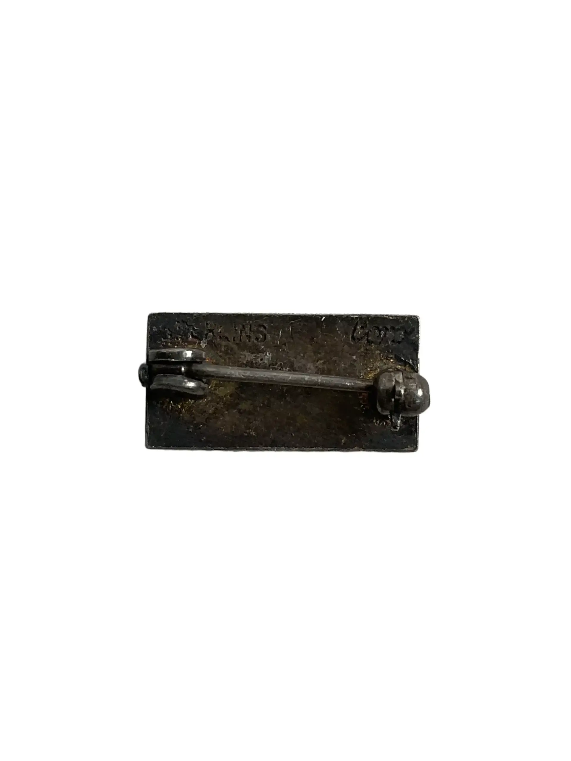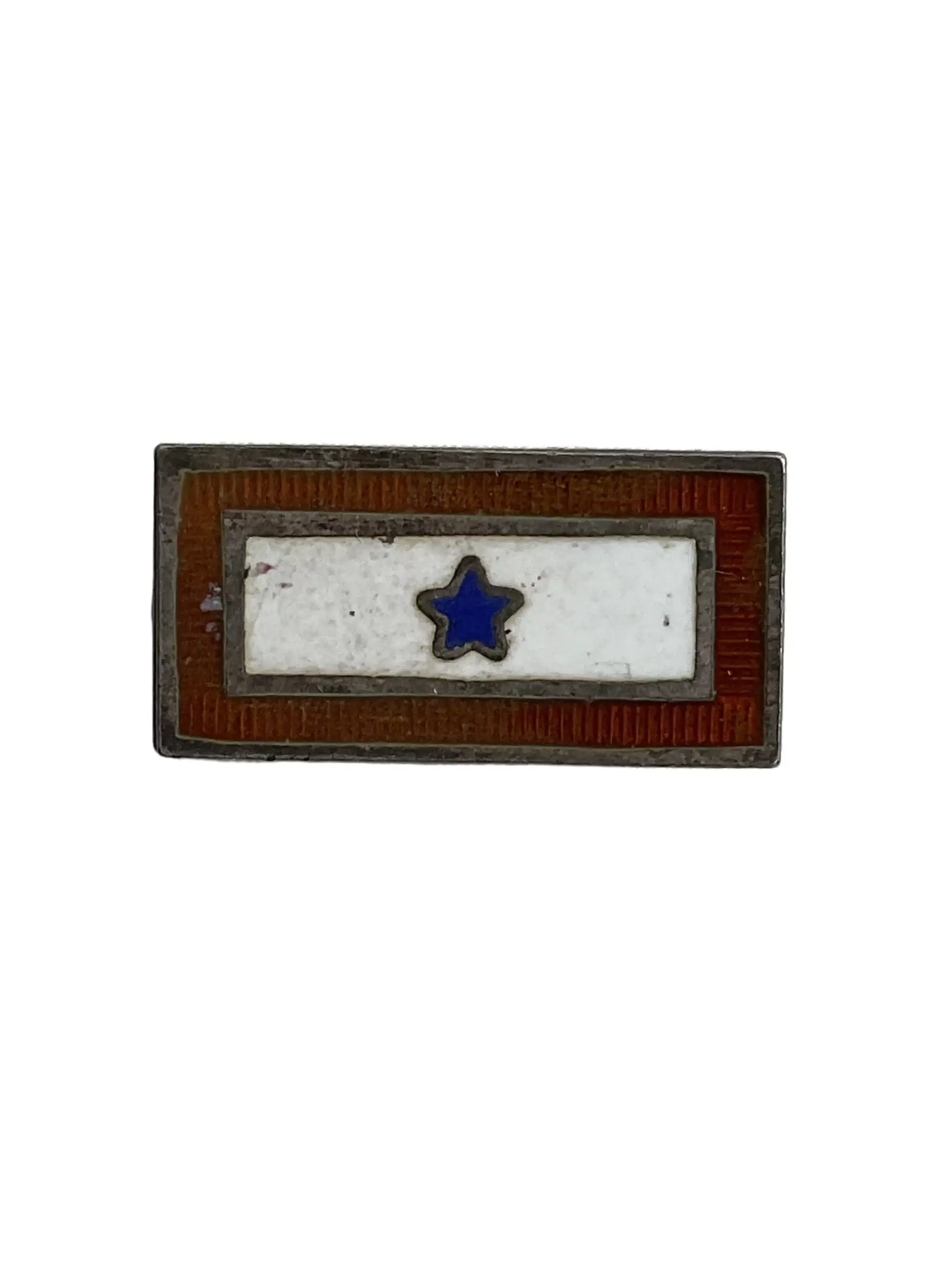 The WW2 US Sons In Service Lapel Pin Sterling is an original artifact from the Second World War, awarded to families whose sons served in the United States military. Crafted from sterling silver, this pin features a rectangular design with a blue enameled border and a white center, containing a single blue star. The star symbolizes a family member on active service. These pins were commonly worn on civilian clothing to indicate a son’s participation in the armed forces. The reverse of the pin is marked “Sterling,” confirming the metal content. Measuring approximately 7/8 inches in length, the lapel pin has a simple attachment mechanism for ease of wear. The Sons In Service lapel pins served both as a badge of honor for families and as a public sign of support and sacrifice during the war. This item represents a significant piece of American home front memorabilia from the 1940s.