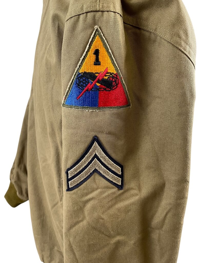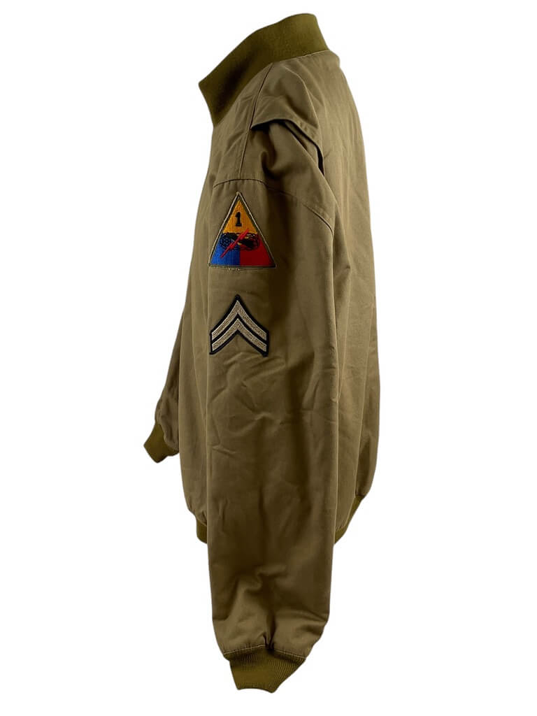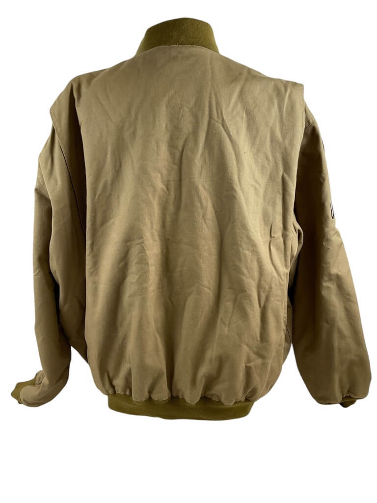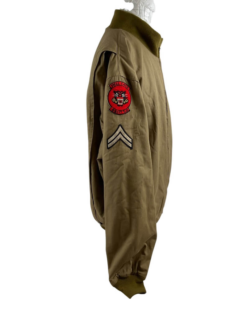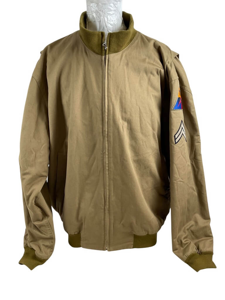 This WW2 US Tankers Jacket, Size XXXL, labeled as ‘At The Front COPY’, is a unique piece of history. Designed in the distinct style of the authentic jackets worn by American tank crews during the Second World War, it is a tangible connection to the past. The jacket is a size triple extra-large, ensuring a comfortable fit for larger individuals. It features a sturdy, heavy-duty construction, ideal for withstanding harsh weather conditions, just like the original versions were designed to do. The phrase ‘At The Front COPY’ signifies this jacket replicates the design and aesthetics of the original wartime gear. This jacket is an excellent item for history enthusiasts, collectors, or anyone with an appreciation for vintage military apparel.