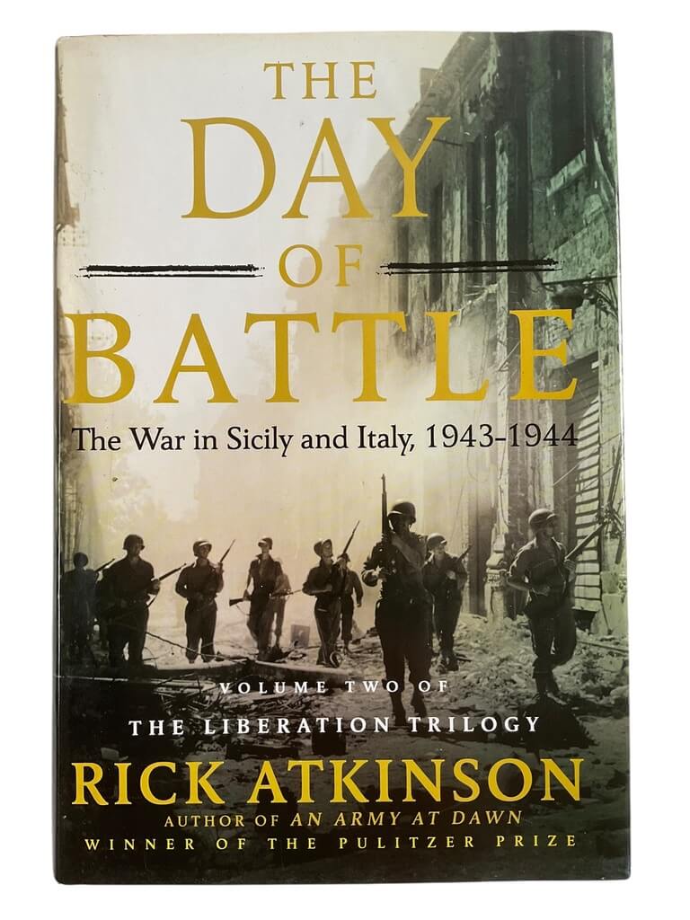 WW2 US The Day of Battle: The War in Sicily and Italy Vol 2 is a used hardcover reference book that provides a detailed historical account of the Allied campaign in Sicily and mainland Italy during World War II. Authored by Rick Atkinson, this volume forms the second part of his Liberation Trilogy. The book offers comprehensive coverage of military operations, strategies, and key figures between 1943 and 1944. It examines major battles, logistical challenges, and interactions with local populations, as well as the broader geopolitical context of the Mediterranean theater. The text is supported by maps, archival photographs, and extensive references. As a used hardcover, there may be signs of handling and age, such as shelf wear or minor markings, but all pages remain legible. This reference book is suitable for collectors, researchers, and those seeking factual information on the US military’s actions and experiences during the Italian campaign of World War II.  Total of 791 pages.