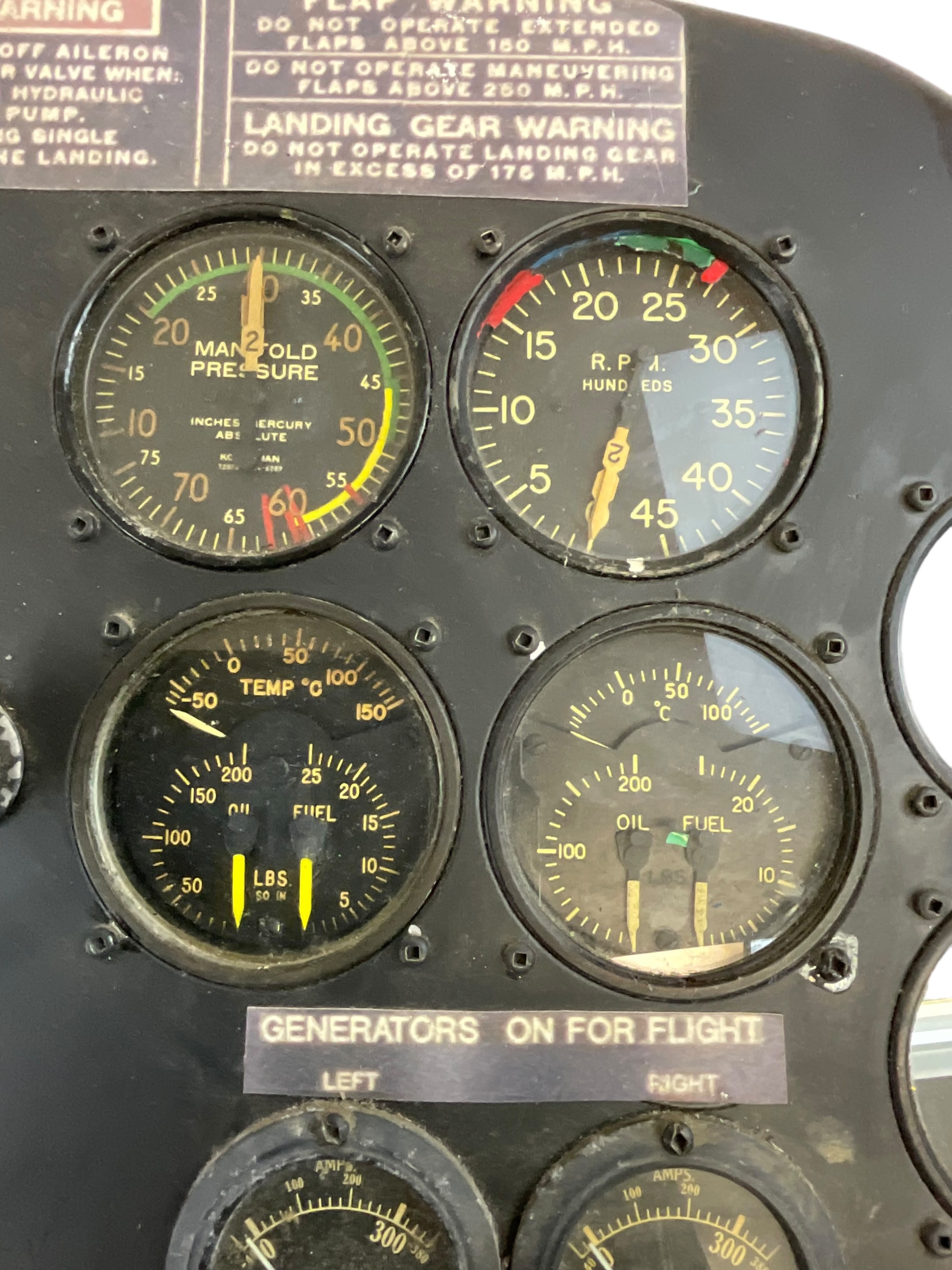 WW2 US USAAF P38 Lightning REPRODUCTION Instrument Panel with Original Instruments