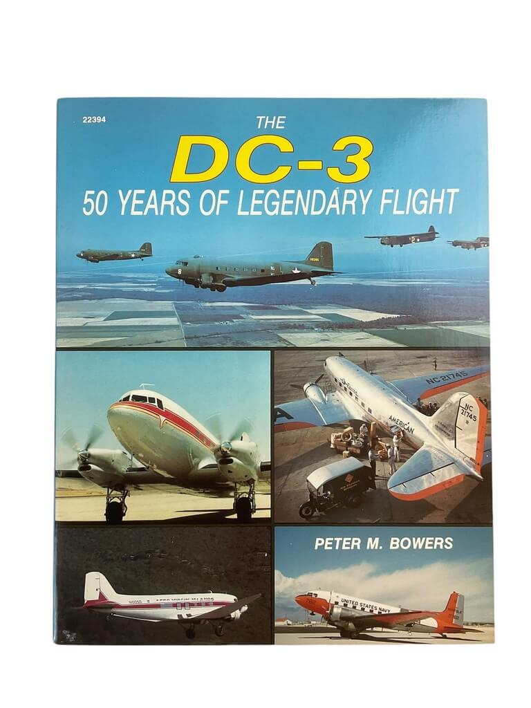 A soft cover used condition, WW2 US USAAF The DC 3  50 Years Of Legendary Flight  Reference Book. Contains many photos, and the story of the DC 3 .The development of this Aircraft , production and its service during WW2 and in post war military and civilian use. Total of 254 pages and this edition was published in 1986.