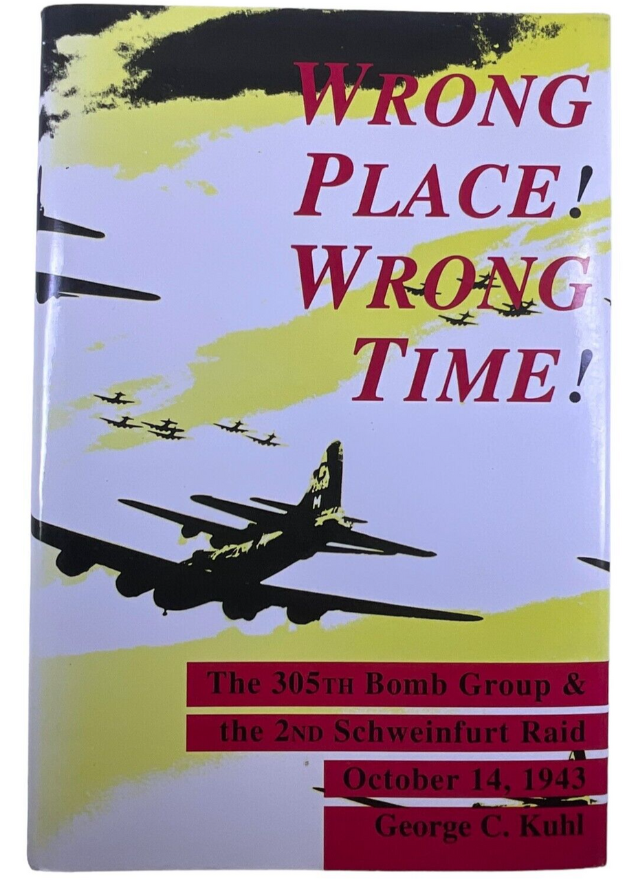 This is a used hardcover WW2 US USAAF Wrong Place Wrong Time The 305th Bomb Group and 2nd Schweinfurt Raid October 14 1943 George C Kuhl Reference Book. Total of 304 pages with lots of pictures and information.