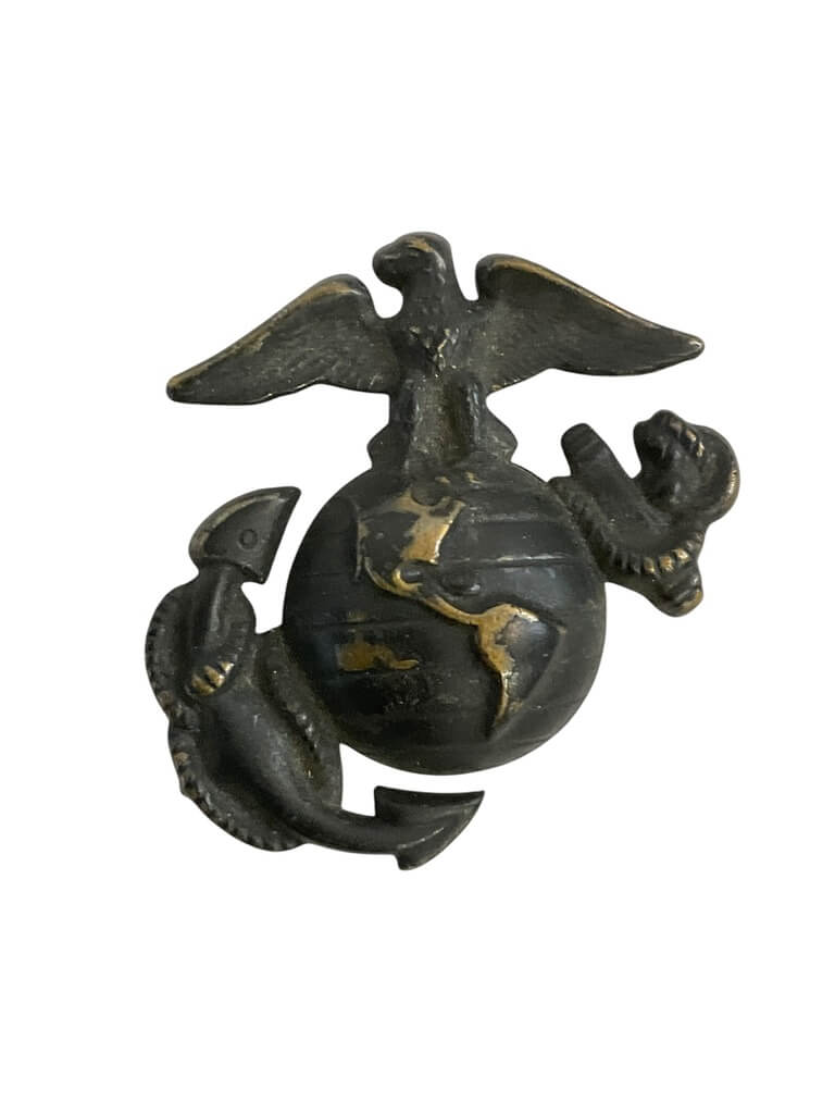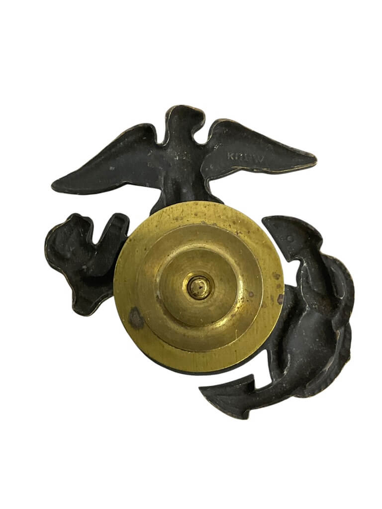 This WW2 US USMC Marine Corps EGA Cap Badge is a genuine piece of military history. It is a classic emblem, showcasing the iconic Eagle, Globe, and Anchor (EGA) symbol that represents the courage, honor, and commitment of the United States Marine Corps. This badge was worn by marines during World War II, making it a valuable collectible item for military enthusiasts and history buffs. The badge is crafted with intricate detailing, showcasing the exceptional craftsmanship of its time. Despite its age, the badge is in good condition, maintaining its original luster and design. This special artifact not only embodies the valor of the USMC but also serves as a symbol of national pride and resilience.