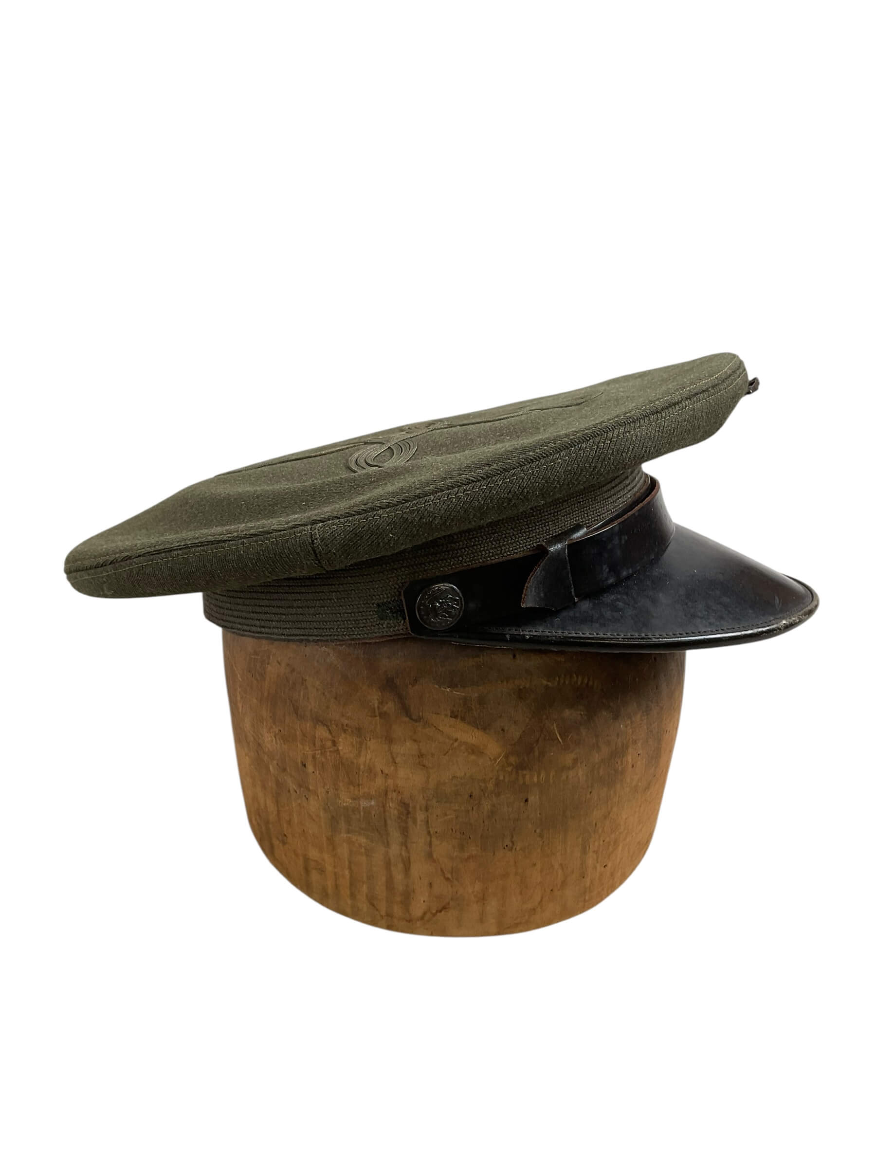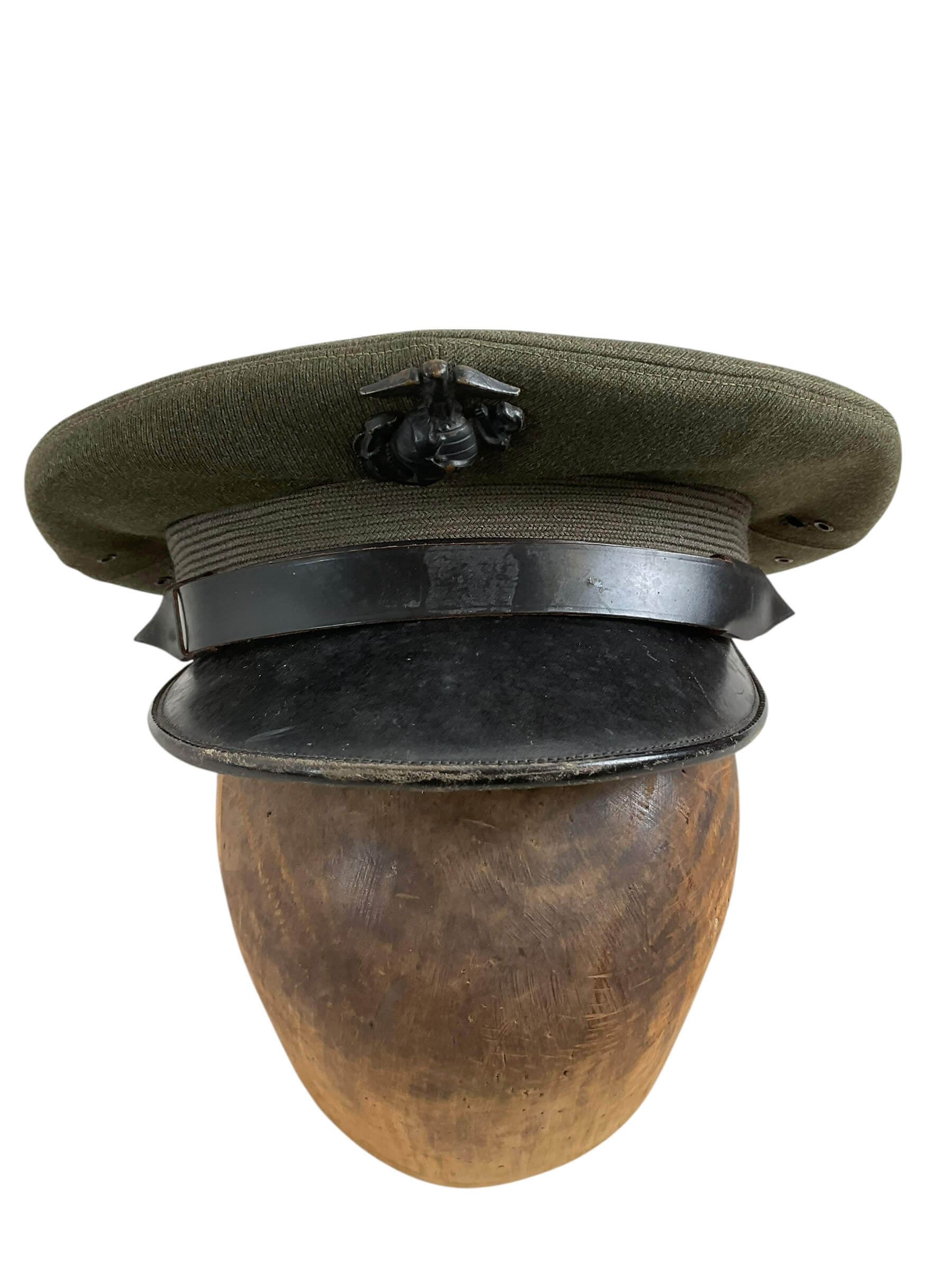 This WW2 US USMC Marine Corps Peak Cap Hat Size 7 is an authentic piece of American military history. It’s a classic example of the uniform gear worn by the United States Marine Corps during the Second World War. Made to fit a size 7, the cap features the iconic design and craftsmanship of the era. The peak cap, also known as a service cap, showcases a structured brim in front and a polished, round top. It has a distinct, dark shade, emulating the strength and resilience of the Marines. The hat is adorned with the original USMC emblem, symbolizing tradition and honor. Despite its age, it has been well-preserved and stands as a proud tribute to the brave servicemen of yesteryears. This item is perfect for collectors, history enthusiasts, or veterans who hold a deep appreciation for the valor of the Marine Corps.