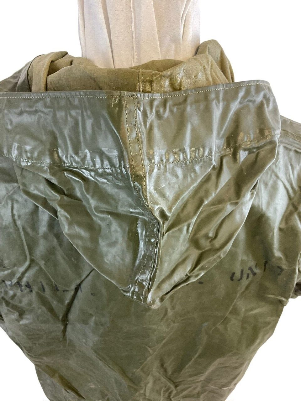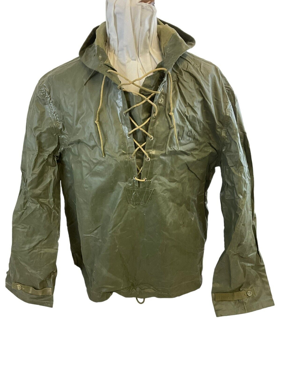 This outstanding WW2 US USN Anorak Slicker Rain Jacket, a genuine piece of naval history, is a remarkable addition to any military or vintage clothing collection. Specifically crafted for the USS Philadelphia’s Aviation Unit, this medium-sized rain jacket exemplifies the durable and practical design required for challenging maritime and aviation conditions. Made from robust, weather-resistant materials, it is designed to protect servicemen from harsh weather, providing superior resilience against wind and rain. Its unique historical significance is paired with practical features such as a full-length front zipper, a protective hood, and secure pockets. The jacket reflects the commitment to quality and functionality that defined US Naval gear in the World War II era. Whether you are a history enthusiast, a collector of wartime memorabilia, or someone seeking a distinctive and functional vintage outerwear piece, this WW2 naval rain jacket offers unparalleled value and authenticity.