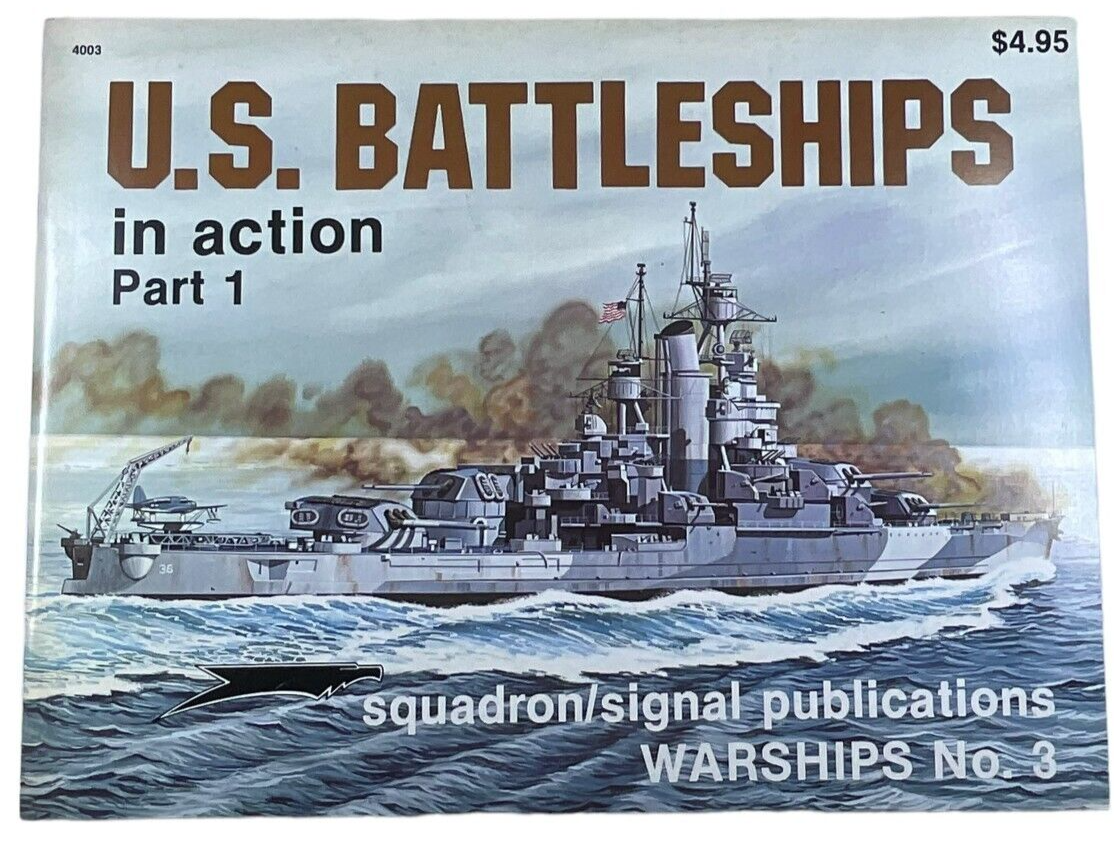 This is a used softcover WW2 US USN Navy Battleships Action Part 1 Squadron Signal Warships No 3 Reference Book.  Total of 50 pages with lots of pictures and information.