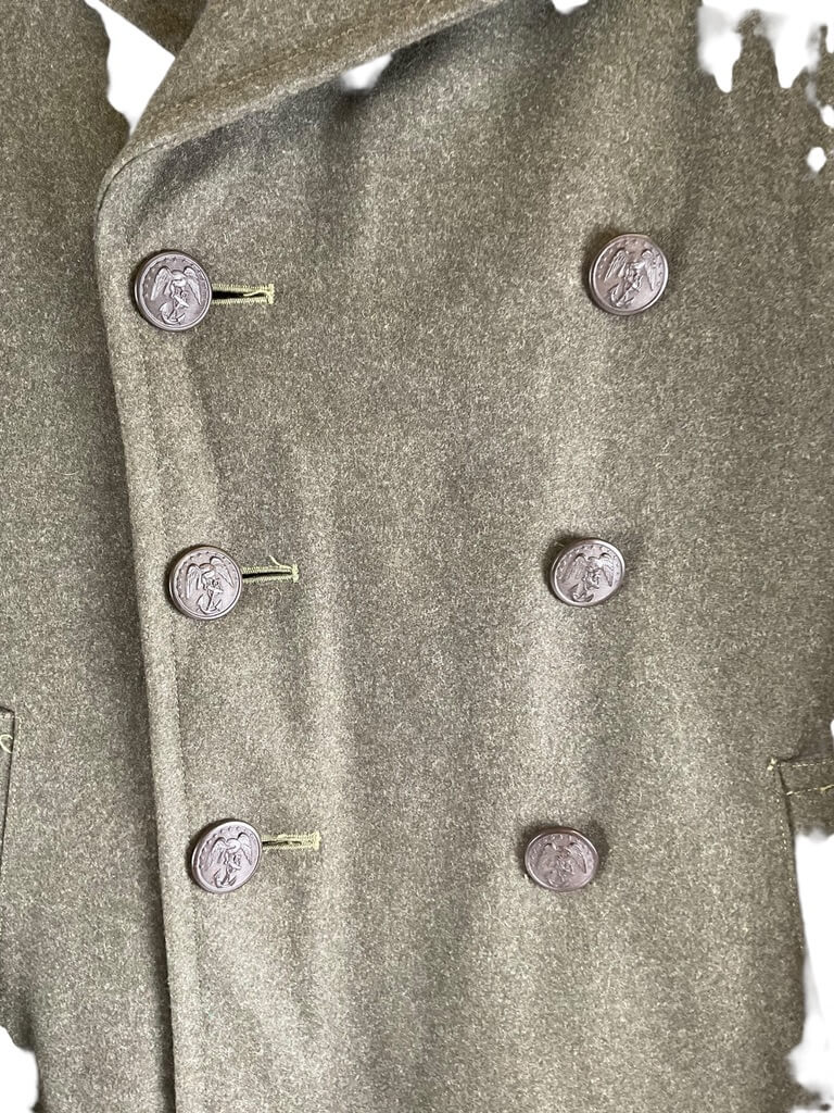 This USN Navy Great Coat, belonging to the World War II era, is a remarkable piece of military memorabilia. Named ‘Osborne,’ it offers more than just historical significance. This coat is a symbol of valor, bravery, and the sacrifices made by the soldiers during the global conflict. The coat, with its classic navy blue color and robust woolen fabric, showcases the simplicity yet resilience of the military attire of the period. Detailed with an anchor button closure, a broad collar, and spacious pockets, it is designed for functionality and durability under harsh conditions. The ‘Osborne’ inscription adds a personal touch to the coat, hinting at the individual stories and experiences of the wearer. This WW2 US USN Navy Great Coat stands as a timeless testament to the indomitable spirit of the men who served during one of humanity’s most challenging times.