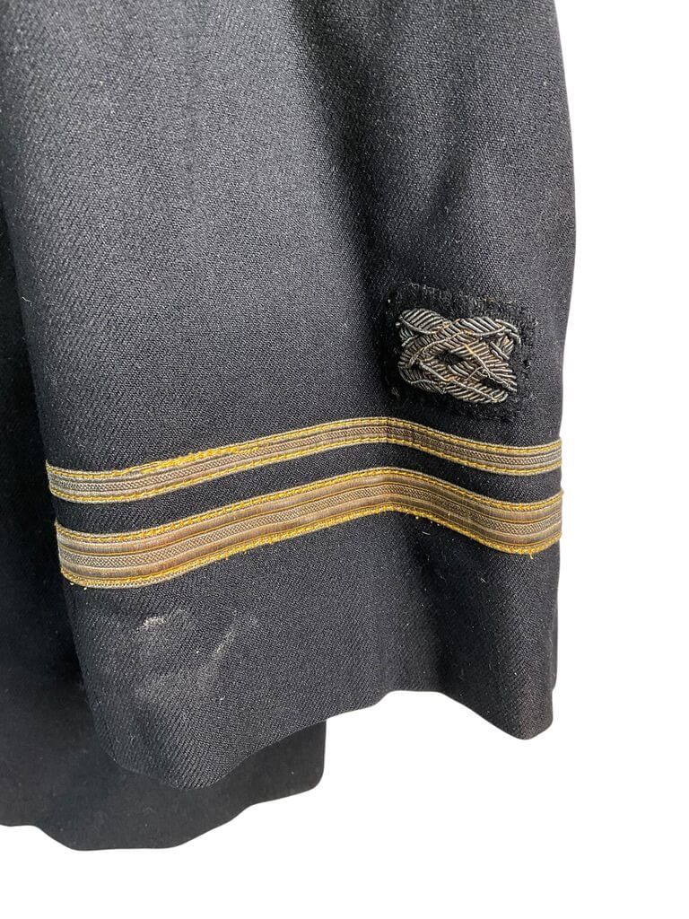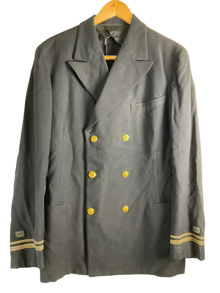 The WW2 US USN Navy Named Officers Blue Tunic Dated 1943 is a historical military garment worn by United States Navy officers during World War II. It features an authentic blue color, named identification, and bears a date marking of the year 1943. This tunic is an important piece for collectors or history enthusiasts, offering a tangible connection to the wartime past.