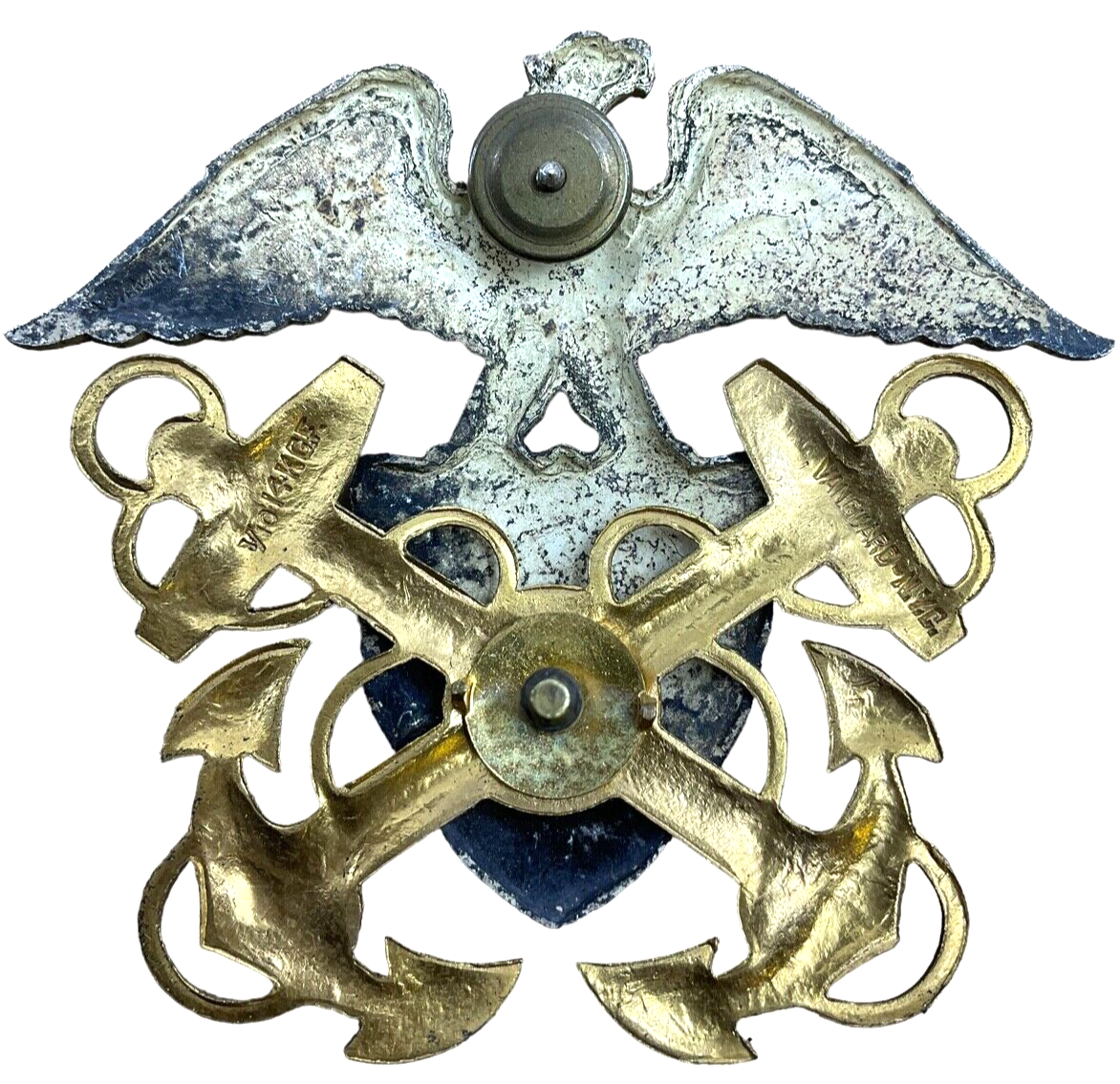 WW2 US USN Navy Officers Screw Back Visor Cap Insignia Vanguard 1/10 Gold Filled