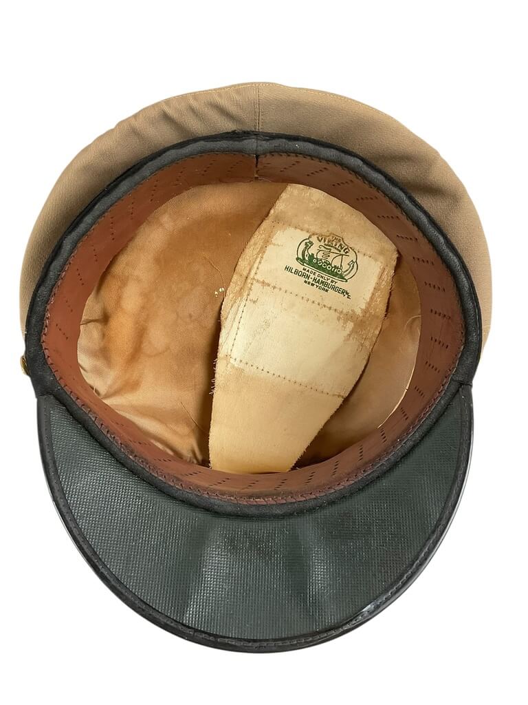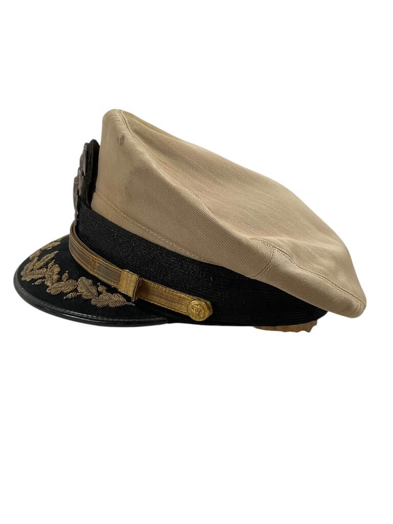 This WW2 US USN Navy Senior Officers Peak Cap Hat is a remarkable piece of military history. A genuine article from the World War II era, it was a distinctive part of the uniform for senior officers in the United States Navy. The cap features a peaked bill, traditionally a sign of rank and authority. The design includes a vibrant gold emblem, representing the Navy’s commitment to honor, courage, and commitment. Made from fine-quality fabric, it is both comfortable and durable. The cap is well-preserved, making it an ideal collector’s item for military enthusiasts or a special keepsake for descendants of Navy personnel. This hat not only represents a significant time in US history, but it also symbolizes the bravery and dedication of the officers who served during the war.
